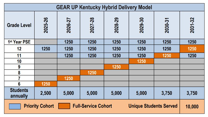 In October 2025, the Kentucky Council on Postsecondary Education (CPE) was awarded a seven-year, $35 million GEAR UP state grant from the U.S. Department of Education. This is the fifth statewide GEAR UP grant awarded to CPE, highlighting the Council’s strong track record of improving student access and success. During its first 25 years, GEAR UP Kentucky served more than 66,000 students in 208 schools in 91 districts across the Commonwealth.